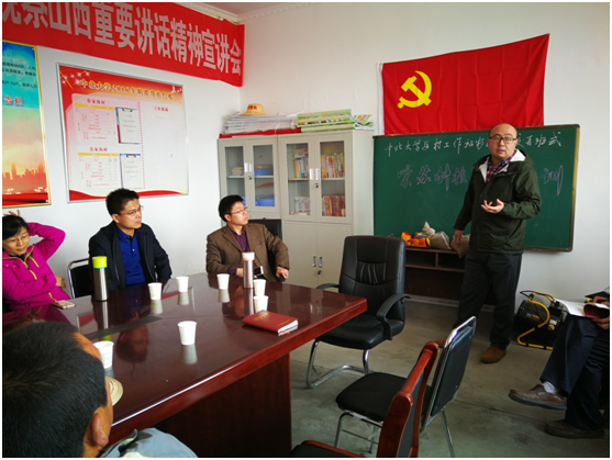廖海洪书记介绍了学院在紫苏研究与产品开发方面的基本情况,在精准扶贫方面,学院紫苏研究与开发实验室一定发挥优势,与种植农户紧密联系,提供技术支持,建设好五寨紫苏种植基地。祁贵生院长强调指出,五寨干旱且无霜期短,紫苏种植尚处于尝试阶段。学院愿意免费提供种子并负责苏子或苏叶的回收。学院会努力培育新品种,早日为农民兄弟提供适合五寨特殊自然条件的优良品种。培训会上,陈铁副教授从紫苏的特性、种植、田间管理、苏子苏叶的采集等方面,为农民兄弟进行了系统详细的讲解,并不时回答大家的提问。