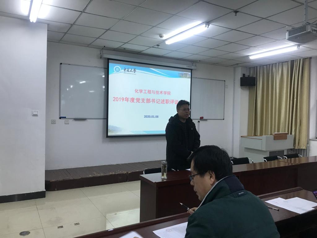 为切实推进全面从严治党向基层延伸,推动基层党组织全面进步,根据学校相关工作要求,学院出台了《化学工程与技术学院关于做好2019年度党支部书记抓党建述职评议考核工作的通知》,我院党委于2020年1月8日下午4点在科学楼206,召开2019年度党支部书记述职评议会。学院党委委员及各党支部书记参加,通过工作汇报互评打分及日常支部工作完成情况进行了综合评议。