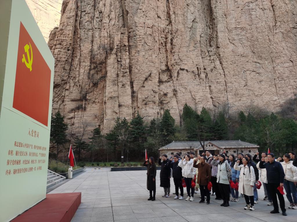 在被誉为“人民军工摇篮”的“黄崖洞兵工厂” 红色广场前,党支部书记高璟同志带领全体党员,面向党旗,举起右拳,重温了入党誓词。党员们的铮铮誓言表达了作为党员的责任与担当,许下了对党忠诚、永不叛党的坚定承诺。