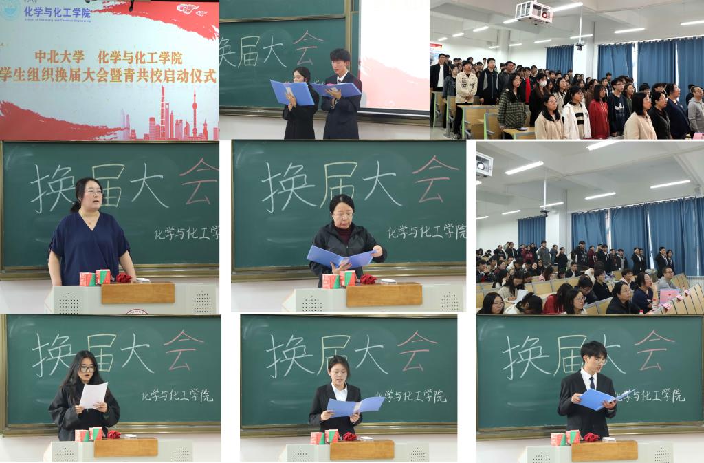 为了总结过去一年学生组织的成果与不足,增强我院学生的工作效率,提高学生活动的质量,同时培养学生骨干的组织与团队协作能力,2024年10月29日下午4点10分,由化学与化工学院学生组织举办的换届大会暨青共校启动仪式于17105H顺利进行,出席本次大会的嘉宾有化学与化工学院团委书记李艳,学生科科长赵芸芳,以及学生科老师王志强,秦秀峰,郭禹,成娟。