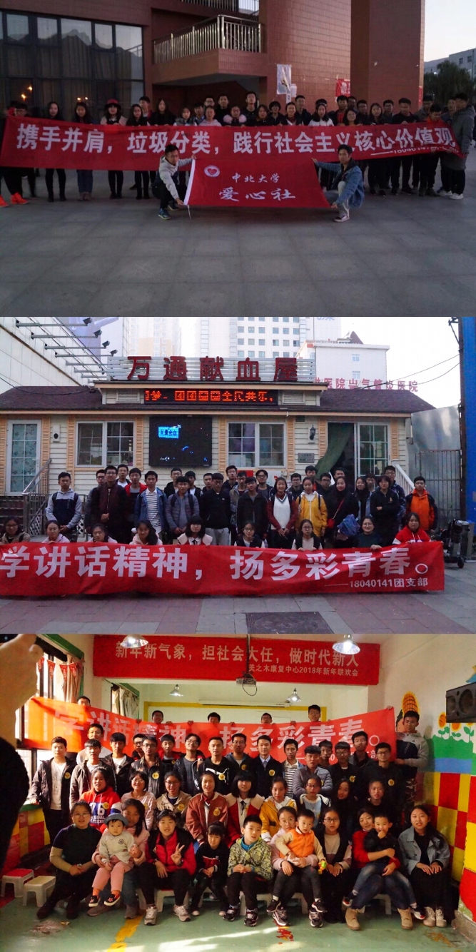 为践行社会主义价值观,响应太原市垃圾分类号召,18040141团支部与中北大学爱心社联合太原市二十所高校,倡议学生进行垃圾分类。10月31日,18040141团支部在龙山餐厅门口对来往学生进行了垃圾分类的宣传普及,动员大家参与垃圾分类线上答题;11月1日,他们发起了“一周生活垃圾分类挑战”,将不可回收垃圾扔掉并将可回收垃圾送给宿舍门口老大爷,提高同学们的垃圾分类意识。