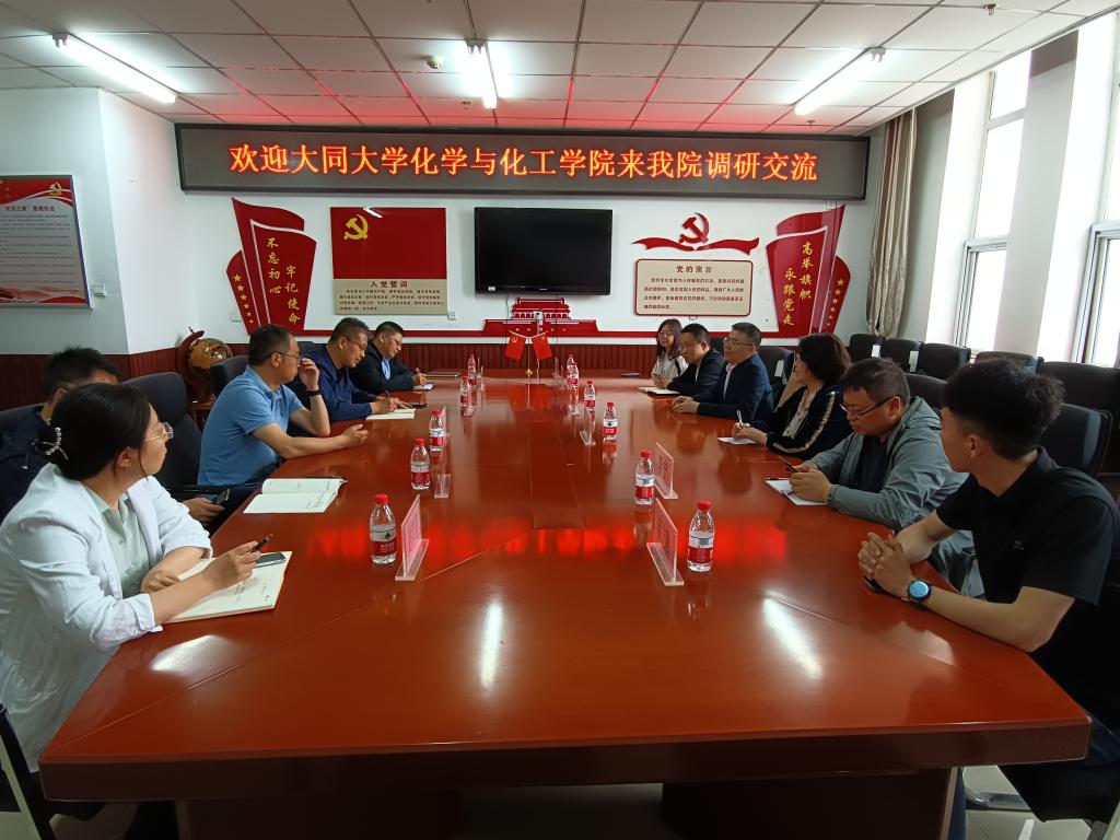 5月16日上午,山西大同大学化学与化工学院副院长解海、副书记张秀娟、化工系主任费鹏、教科办主任马宏芳、政治辅导员郝志鹏、制药工程专业负责人李宁一行6人来我院调研交流,院长祁贵生、副院长王海宾、化学工程系主任李裕及相关科室负责人参加座谈。