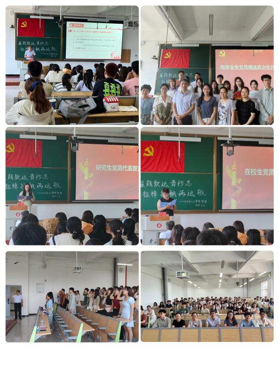 活动伊始,在吴书记的带领下,全体党员重温入党誓词,铿锵有力的誓词在空中久久回荡,大家以饱满的热情表达其坚定不移的政治信念和奋进决心。教工党员代表为毕业生党员颁发政治生日贺卡,每张贺卡里记载着入党誓词和党组织对个人的谆谆寄语,期望大家在今后的生活中能够牢记党员身份,永葆初心底色,努力奋斗、勇担时代责任。