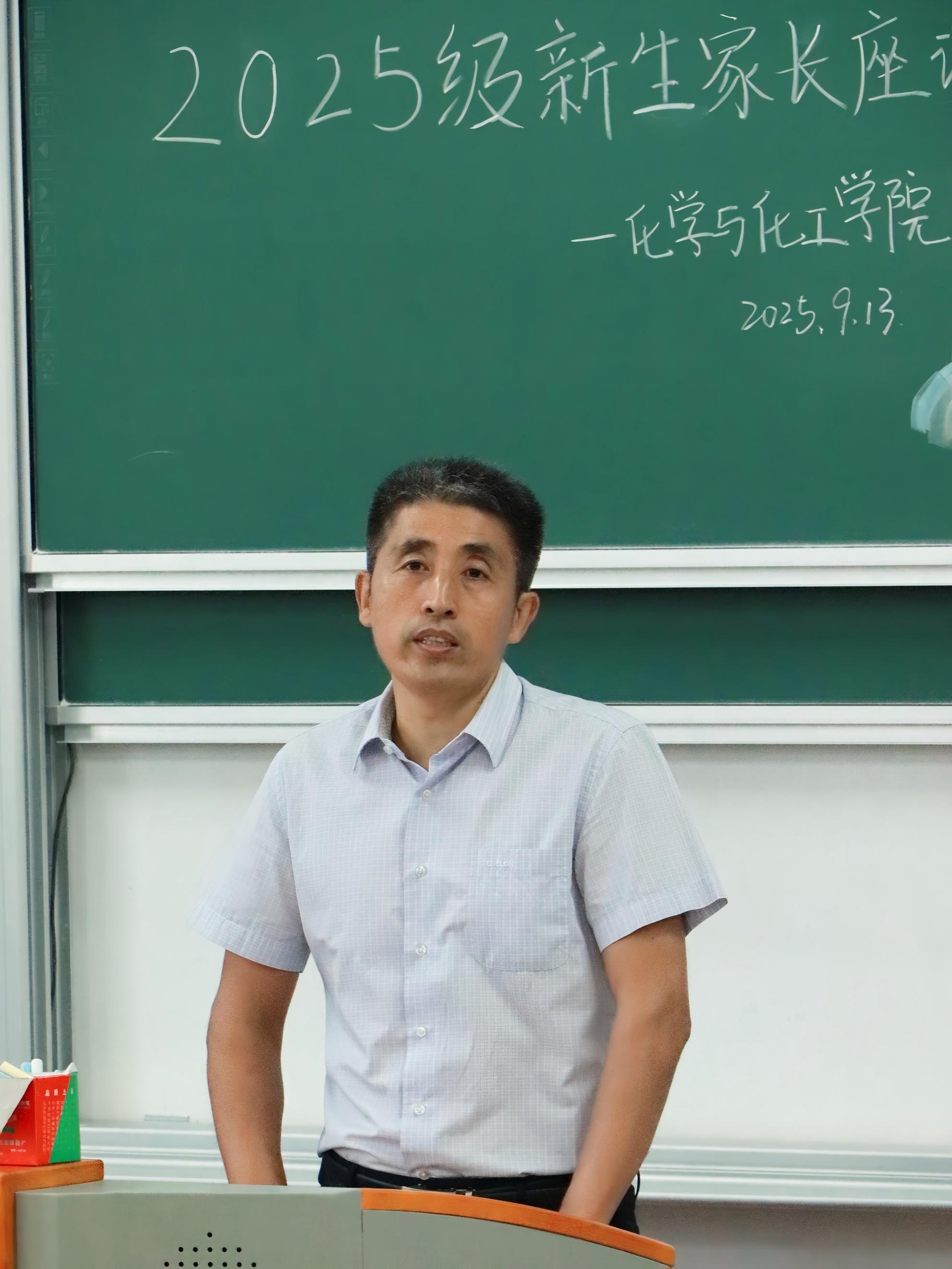 为加强家校联动,凝聚育人合力,2025年9月13日下午,化学与化工学院召开2025级新生家长见面会。全体院领导、专业负责人、辅导员、新生班主任与来自五湖四海的新生家长齐聚一堂,共话学子成长,共谋育人蓝图。本次见面会由院党委副书记蔡文涛主持。