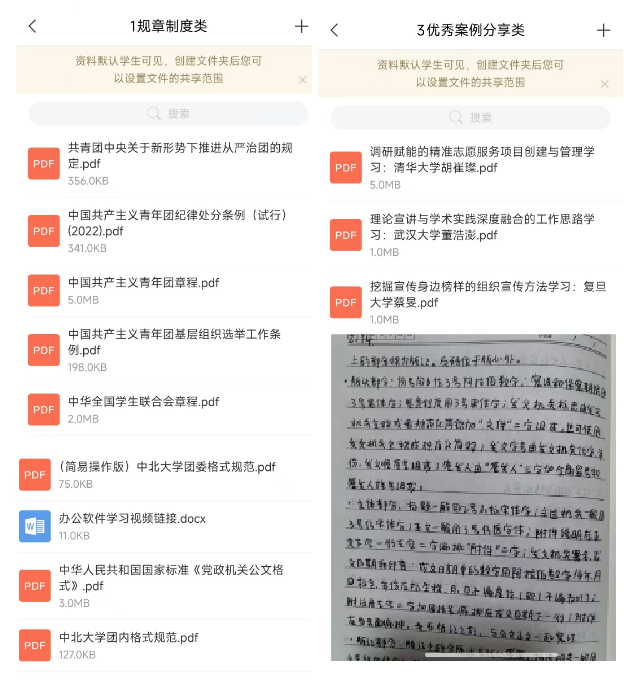 本次学习紧扣青年思想引领与骨干能力提升核心目标,构建三大学习模块:理论学习类,内容涵盖共青团章程、纪律条例等规章制度,习近平总书记重要讲话、党的二十届四中全会公报等政策文件,以及《习近平的七年知青岁月》、《梁家河》等经典书籍,助力骨干坚定理想信念、提升政治素养;技能提升类,开设Word/PPT/Excel办公软件、党政机关公文格式、团学文件规范等课程,夯实实操能力;优秀案例类,学习北京大学、清华大学等高校先进经验,拓宽工作思路。