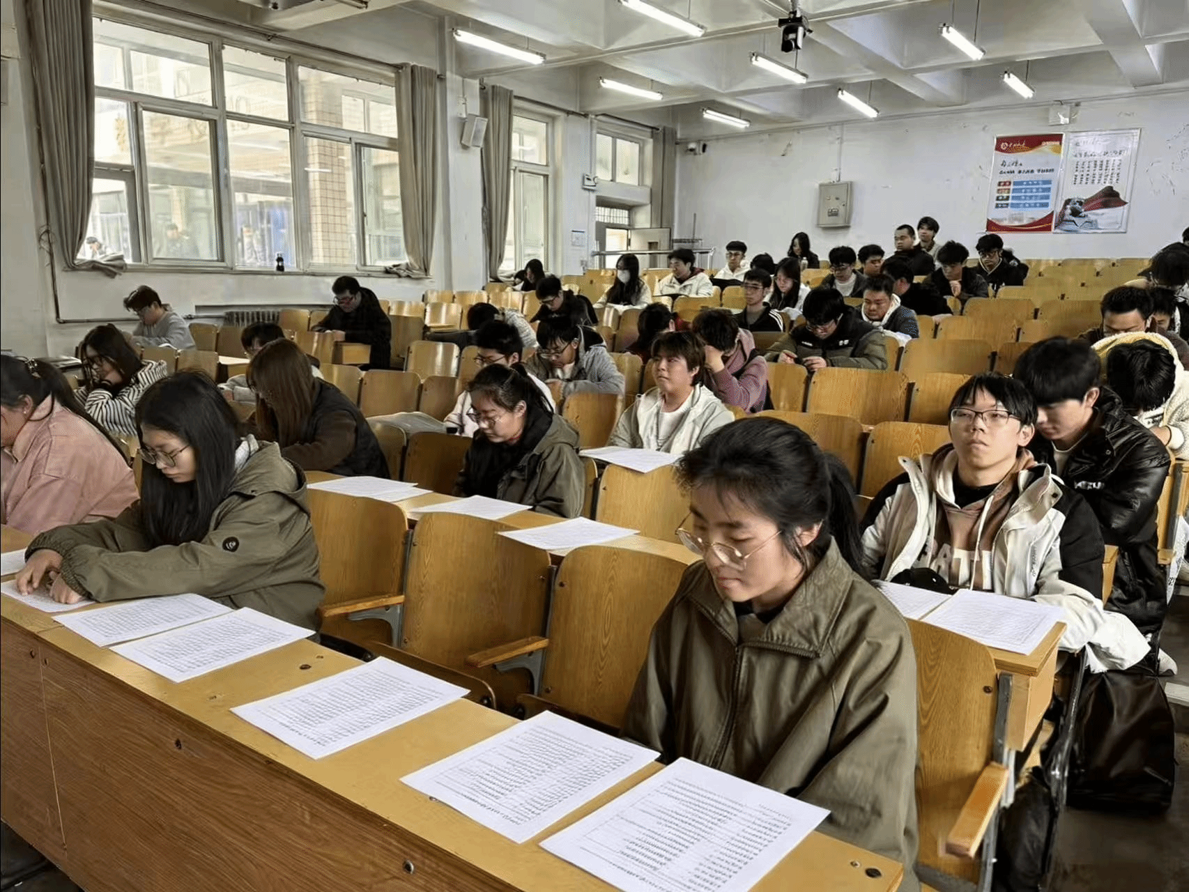 学习期间,骨干们自主完成线上课程,平台实时记录进度;学院通过定期打卡、线上测验、心得分享等方式检验阶段性成果,确保学习不断线、标准不降低。3月15日,学院统一组织学生骨干在09102H和09202H考场集中开展理论学习考试,以考促学、以考敦行,考试全程严格规范,参照正式流程组织监考与巡考。