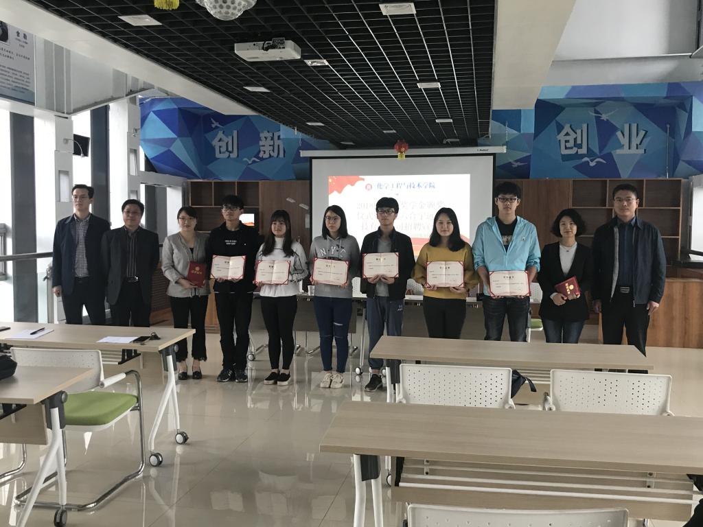 2018年9月19日下午2:30,化学工程与技术学院-Bellen奖学金颁奖仪式我院办公楼科学楼七层连廊举行,北京六合科技有限公司总裁助理公樊瑞珍、人事部经理马征,院党书记廖海洪,院长祁贵生出席颁奖仪式,会议由院党委副书记李云主持。
