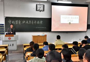 大会开始第一项,由学生科辅导员秦秀峰老师介绍中北奖章、校长奖章的评选条件。随后中北奖章候选班级进行答辩,班级代表全方位地介绍了班级情况,流利自信的言语,精彩纷呈的解说,充分展现出我院优秀班级的风采。校长奖章候选同学分别从学习成绩、获奖状况、科研能力、保送学校等方面进行汇报,出色表现赢得了全场的热烈掌声。汇报结束,由与会老师及同学投出了属于自己神圣的一票。