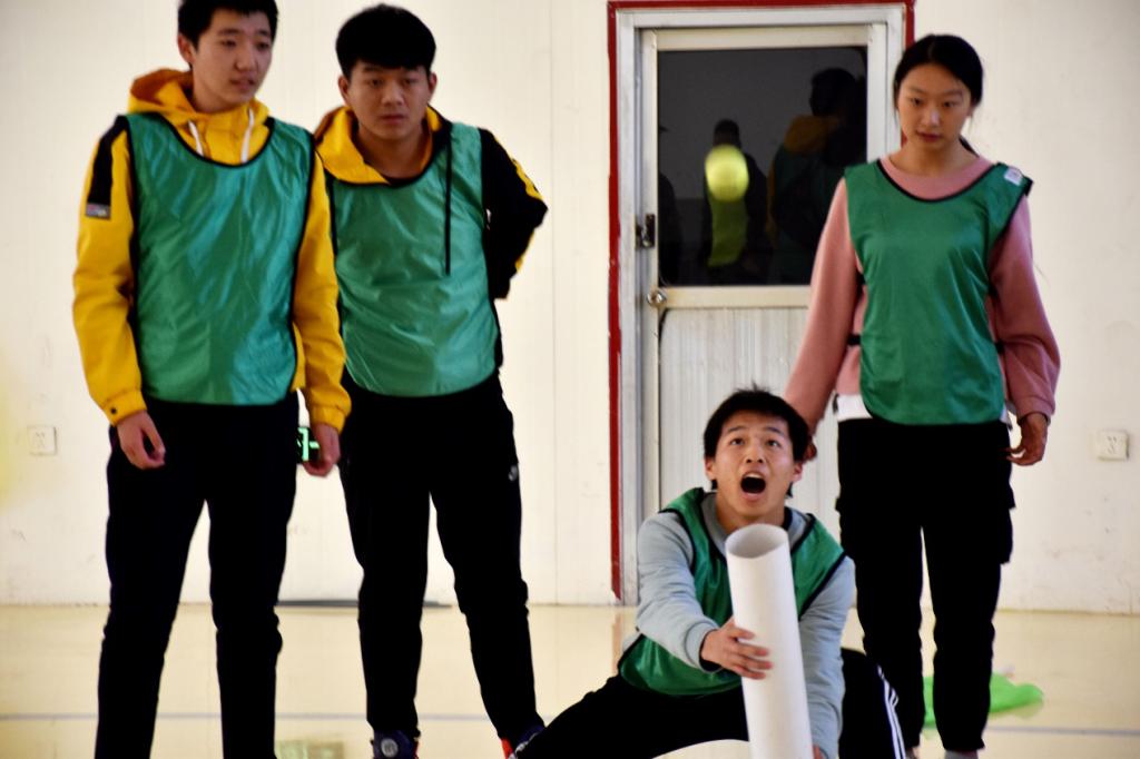 主教练在简要介绍此次活动的目的及活动背景后,将同学们分成两个部分共八个小组分别进行团建活动。各小组进行讨论后,分别展示了自己小组别出心裁的队名、队歌、队形。随后,同学们在教练的带领下进行了丰富的团建活动。雷区取水、极速60秒、沙场点兵,这些活动考验着同学们的沟通与合作的能力。每个队伍发挥着团结、专注、坚持、不服输的精神,各组员也为了共同的目标完成着各自的“任务”,同时在每个项目结束后穿插了一些总结,让同学们体会到团结的强大力量。