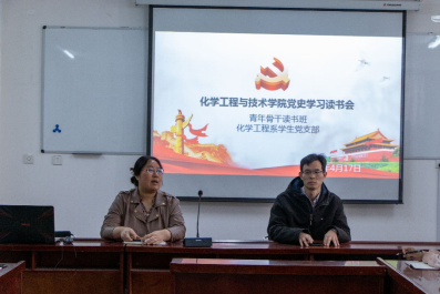 为落实习近平总书记关于党史学习教育动员会上的讲话精神,结合学校统一部署扎实推进学校党史学习教育工作。4月17日上午10时,化学工程与技术学院党史学习读书会在科学楼C栋206会议室举行。化学工程与技术学院党委副书记李云主讲,团委书记李艳主持会议,化学工程系学生党支部与青年骨干读书班全体成员参加读书会。