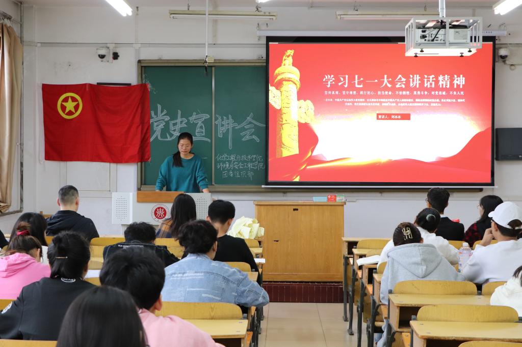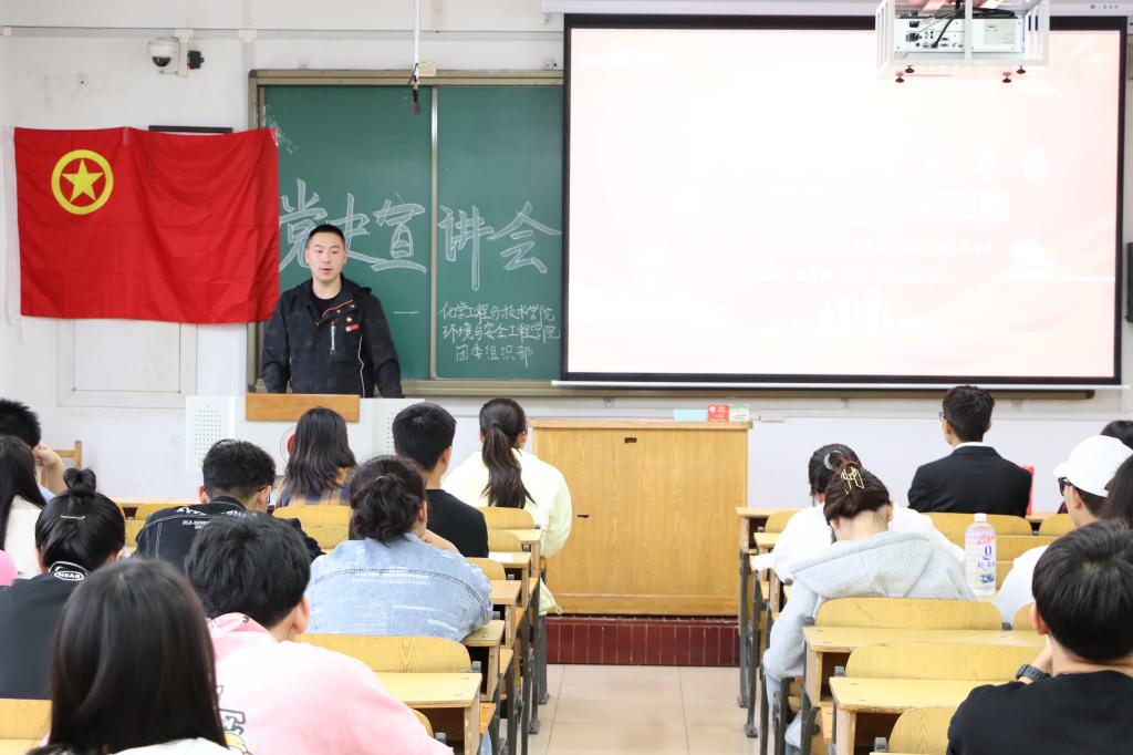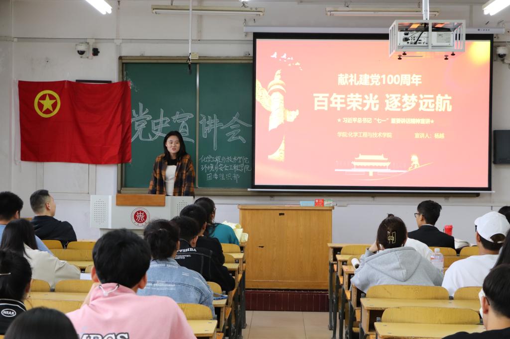 为了响应党中央号召,扎实推进“七一”重要讲话精神的学习,将“七一”重要讲话精神宣讲覆盖到每个团支部和全体学生骨干。2021年9月25日上午9点由化学工程与技术学院和环境与安全工程学院团委联合举办的学习习近平“七一”重要讲话精神宣讲会在10305H顺利进行。聆听本次宣讲的有化学工程与技术学院和环境与安全工程学院学生骨干、各团支部委员。宣讲人为“青春宣讲团”三位团员。