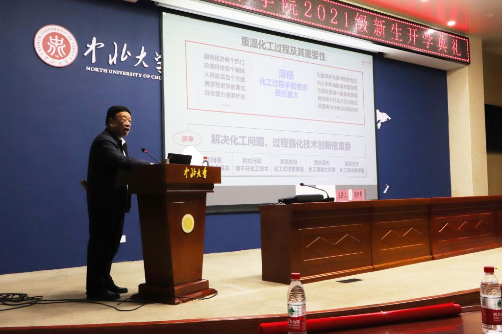 为提高学院新生的专业认知和专业兴趣,帮助新生树立学习目标,2021年10月5日下午五点,在开学典礼结束后,化学工程与技术学科首席学科带头人,原中北大学校长刘有智教授主讲的专业教育第一课在瑾瑜国际会议中心顺利举行。2021级全体新生参加本次课程。