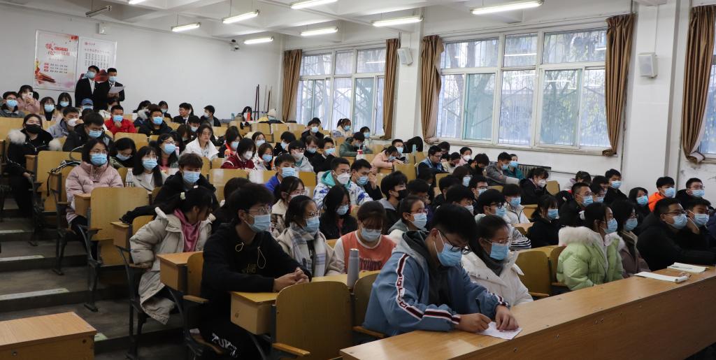 学院学生科秦秀峰老师为同学们做党团基础教育,要求同学们要继承党的优良传统,有活力、有创造性地开展工作,把共青团建设成团结青年的坚强核心。