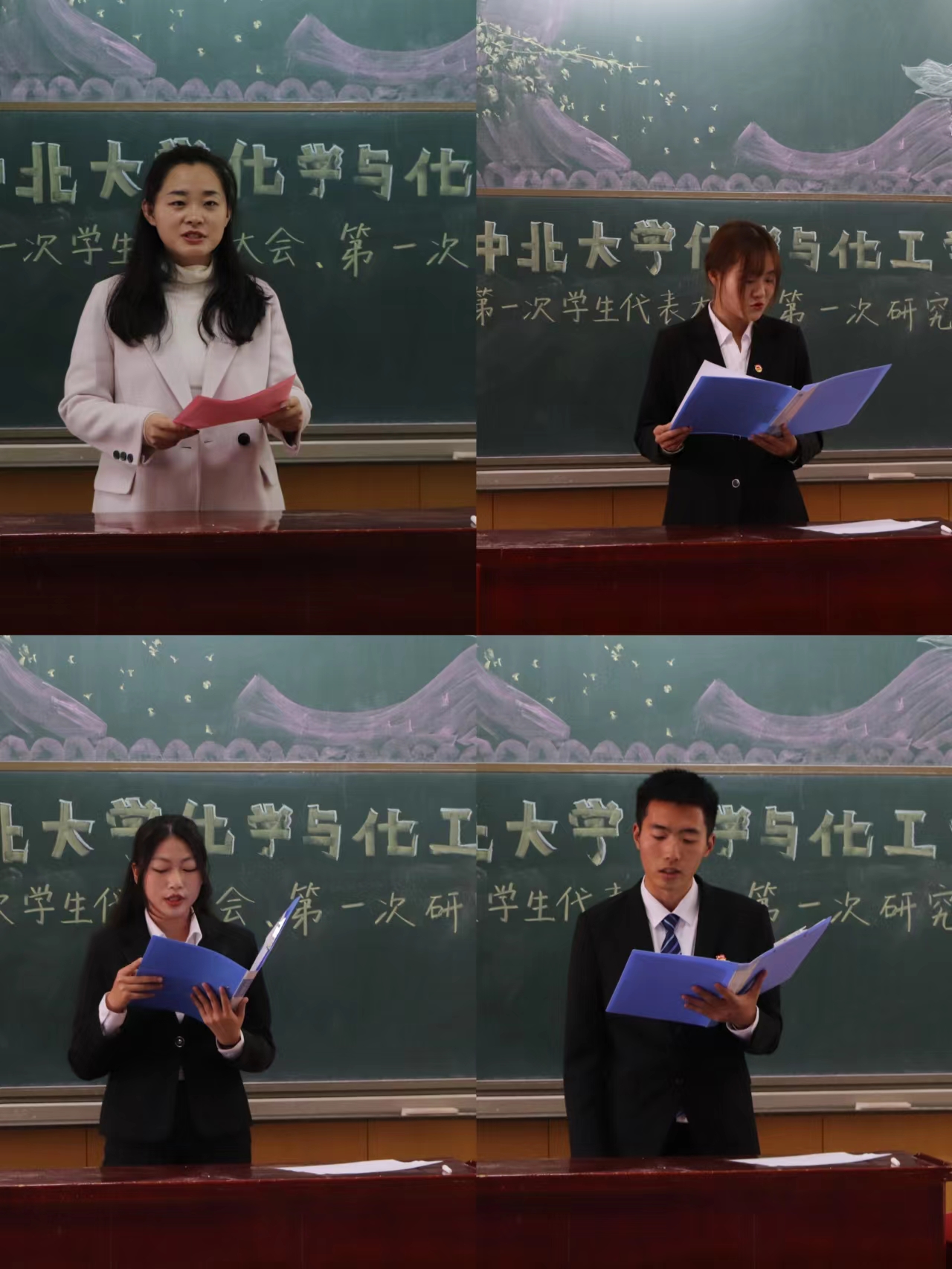 竞选环节,本着民主、公平、公正、公开的原则,代表们采用无记名投票、差额选举的方式选举产生了中北大学化学与化工学院第一届学生委员会委员、第一届研究生会主席团成员以及中北大学第四次学代会、第二次研代会正式代表。