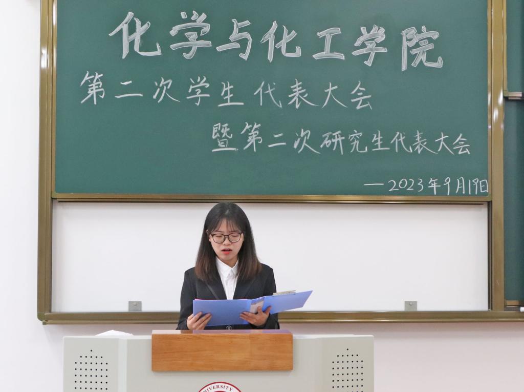 团委书记李艳宣读了《关于化学与化工学院召开第二次团代会暨学代会请示的批复》,对学院团学工作和过去一年来取得的成绩表示高度的肯定,希望新一届团学干部能够继续坚定理想信念,加强自身锤炼,继续开创化学与化工学院团学工作新局面。
