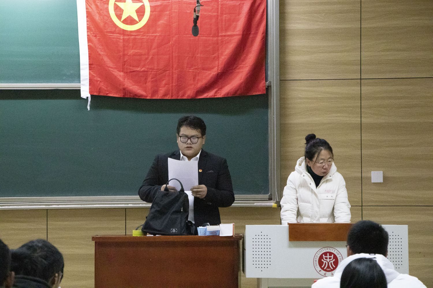 马克思主义学院庞旭瑞老师则讲述了以“新时代党的建设”为主题的指导方针、根本原则、主线展开和总体布局。重点讲述了总体布局中的“5+2”方针。“5”指的是政治建设,思想建设,组织建设,作风建设,纪律建设,其中以政治建设为首位。“2”指的是制度建设和反腐败。精辟论述了政治建设事关方向、思想建设奠定基础、组织建设筑牢根基、作风建设塑造形象、纪律建设伴随成长、制度建设贯彻始终、反腐斗争展现自信7个方面的重要作用,引用故事、案例详细阐述了加强新时代党的建设的重大意义和丰富内涵。