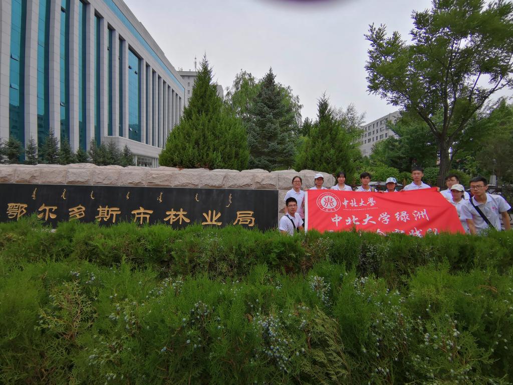 经过一天的适应和了解鄂尔多斯市,2019年7月18日上午10点,实践队乘车来到了鄂尔多斯市林业和草原局,进入大厅,巨大的墙壁上印有几个鎏金的大字——为人民服务。我们对林业局相关领导进行了采访,经介绍近年来鄂尔多斯市位于中国北疆内蒙古自治区西南部,西、北、东三面为黄河环绕,境内北有库布其沙漠,南有毛乌素沙地,东部为丘陵沟壑区,西部为波状高原硬梁区,年均降水量仅为150至350毫米,是全国沙漠化和水土流失较为严重的地区之一。