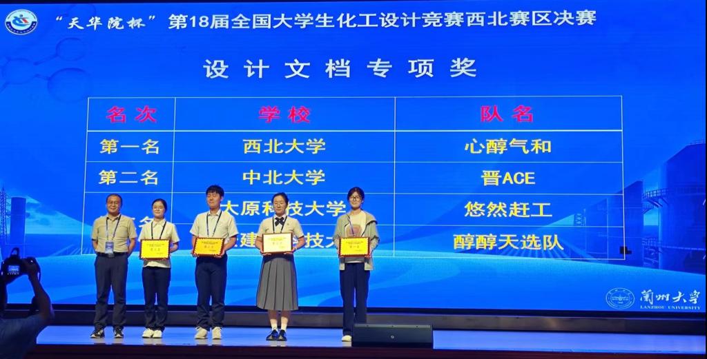 8月3日,西北赛区总决赛进行了12进9的特等奖角逐,赛事的氛围逐渐紧张,中北大学“晋ACE”团队凭借过硬的化工设计实力、出色的现场答辩、精彩的团队协作及现场应变能力,在西北赛区总决赛中以优异成绩获得西北赛区特等奖,同时获得优秀“工程图纸”与优秀“设计文档”专项奖,并将代表西北赛区到大连理工大学参加全国总决赛。