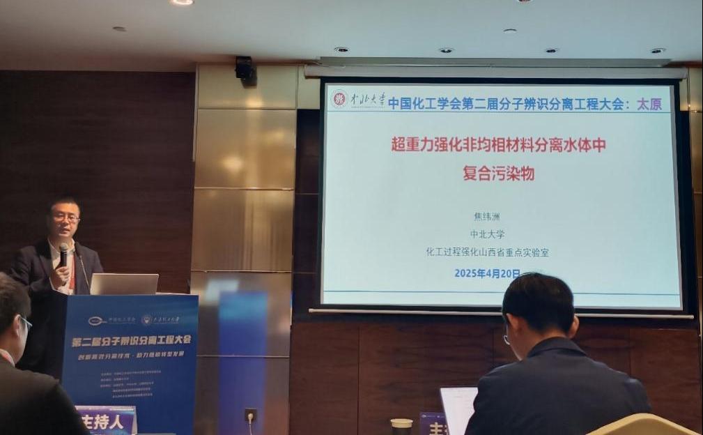 我院祁贵生教授和焦纬洲教授分别主持了第4分论坛报告会;焦纬洲教授做了题为《超重力强化非均相材料分离水体中复合污染物》的邀请报告,报告提出了超重力强化非均相材料分离水体中复合污染物的策略,实现了非均相材料的高效制备,创新性地将吸附与非均相催化臭氧技术相耦合,同步去除废水中的复合污染物,为复合污染物的处理提供了理论和实践支撑。