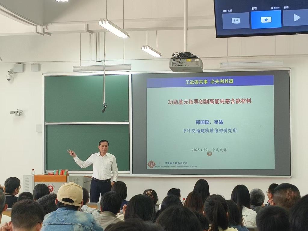 为拓宽师生的学术视野,化学与化工学院于2025年4月29日下午15:00在17101H举办了题为“功能基元指导创新高能钝感含能材料”的华彩讲坛,本次讲座由中国科学院福建物质结构研究所研究员郭国聪主讲,学院科研院长赵慧鹏主持,学院师生参加了此次讲座。
