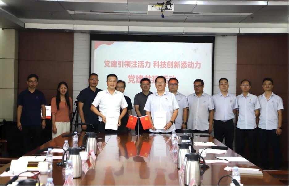 在同材料院的座谈过程中,双方围绕党建共建、具体业务等内容进行了深入探讨,达成了共识--以党建为引领、为平台、为纽带,凝聚力量,提升向心力,推动共同发展。双方以“党建引领注活力,科技创新添动力”为主题,开展了党建共建签约仪式。