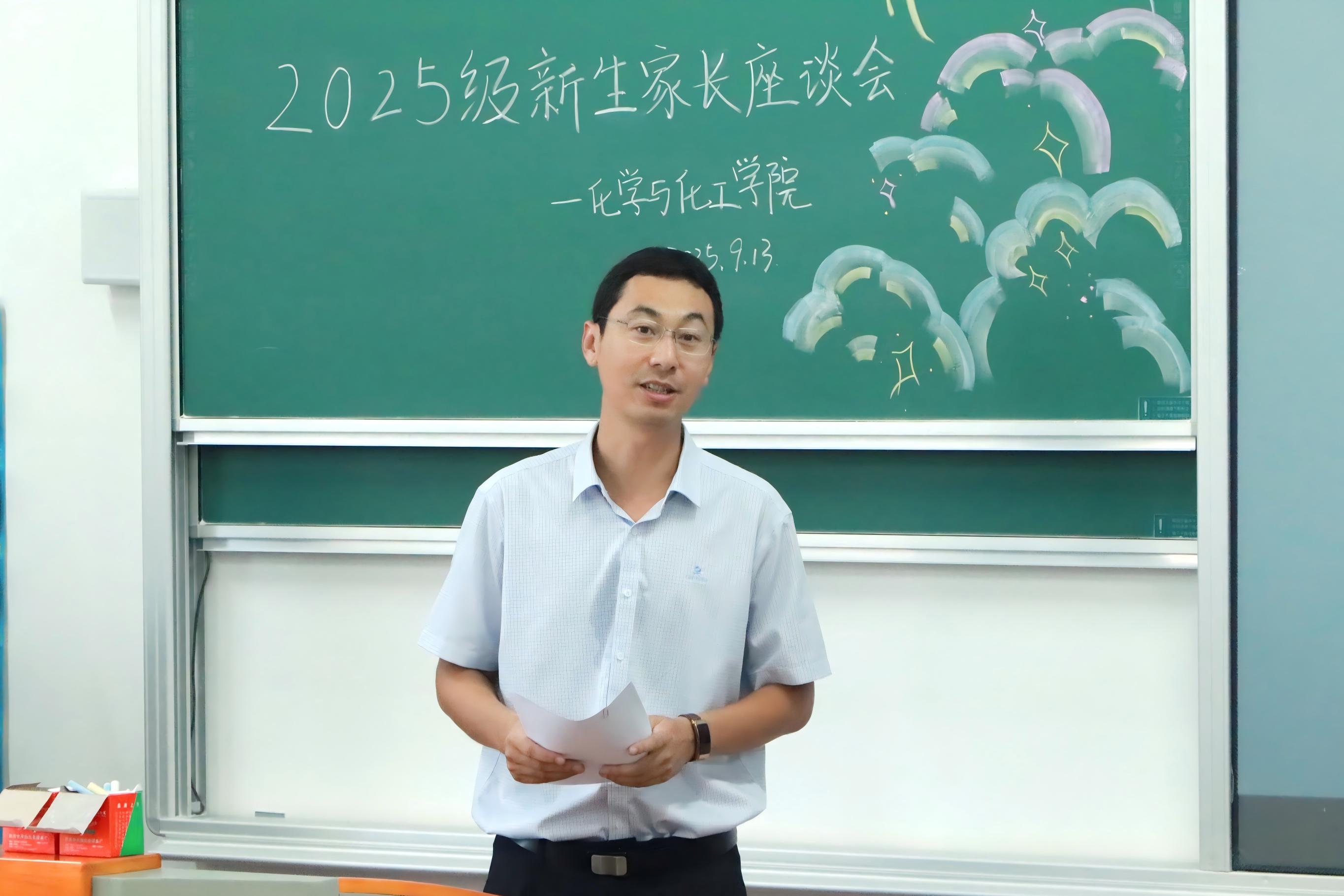 为加强家校联动,凝聚育人合力,2025年9月13日下午,化学与化工学院召开2025级新生家长见面会。全体院领导、专业负责人、辅导员、新生班主任与来自五湖四海的新生家长齐聚一堂,共话学子成长,共谋育人蓝图。本次见面会由院党委副书记蔡文涛主持。