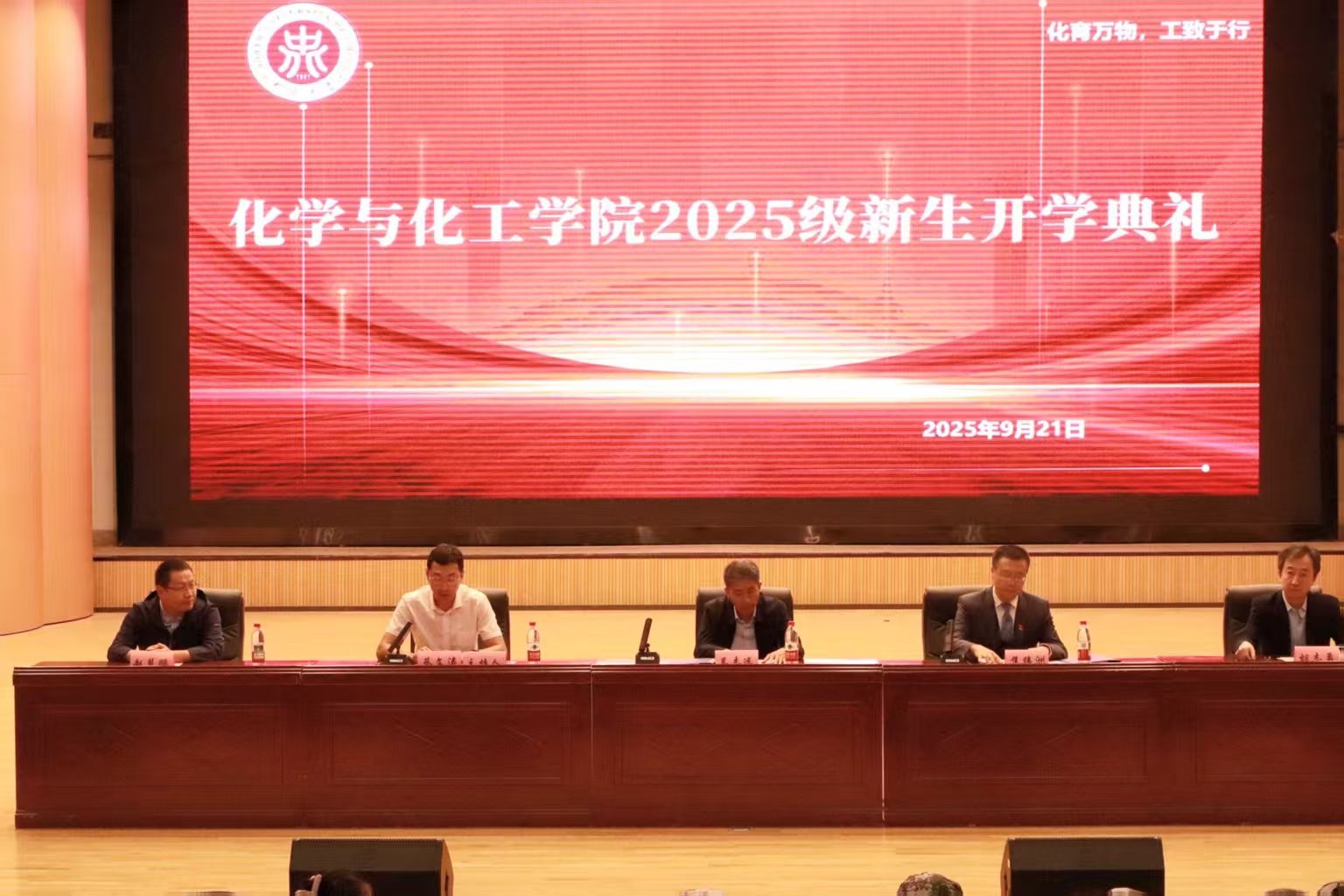 9月21日,化学与化工学院2025级新生开学典礼在科艺苑隆重举行。学院全体院领导、各专业负责人、科室负责人、辅导员、班主任与来自五湖四海的2025级全体新生齐聚一堂,共同见证一场盛大的典礼。典礼由学院党委副书记蔡文涛主持。
