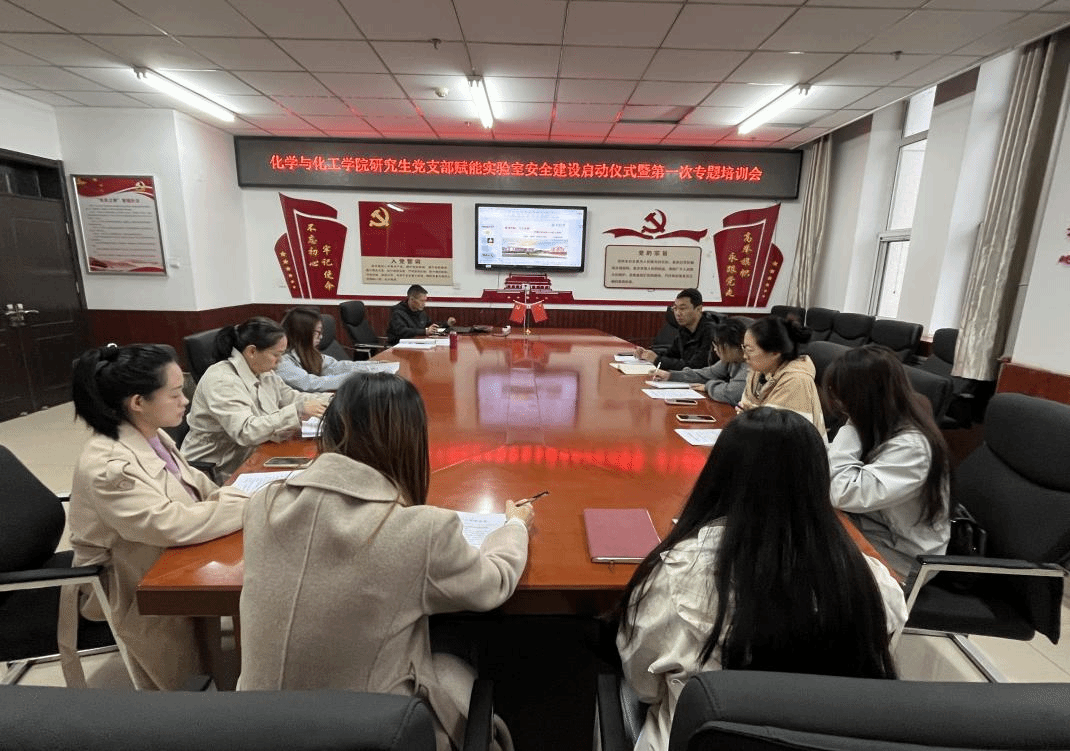 为深入落实学院党委规范提升党建工作要求,加强党建工作与业务工作相结合,发挥研究生党员在实验室安全建设中的模范作用。10 月17日上午,化学与化工学院在科学楼 C 座705召开研究生党支部赋能实验室安全建设启动仪式暨第一次专题培训会。学院党委副书记蔡文涛、安全管理员马忠平、组织员王立敏及各研究生党支部书记、研究生党员代表参会。会议由蔡文涛主持。
