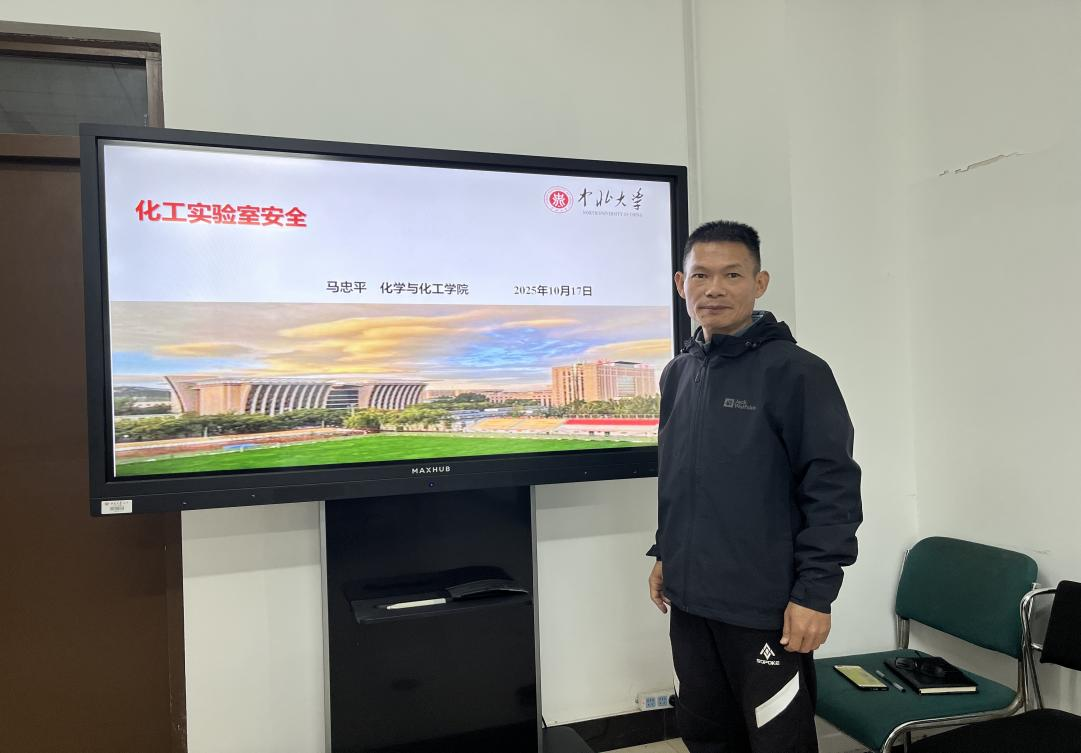 随后,马忠平以“理清思路,立足自我—把握实验室安全的主动权”为题开展第一次专题培训。培训围绕实验室安全核心风险点与党员安全监督员履职能力提升展开。马老师结合学院实验室实际,重点讲解化学品分类存放规范、用电安全禁忌、钢瓶固定与标识管理等内容,通过“有机溶剂泄漏引发火灾”“未穿防护服导致强酸溅伤”等真实案例,剖析事故发生的根源,强调 “预防优先”的重要性。马老师的讲解为安全监督员顺利开展实验室安全检查指明了方向。