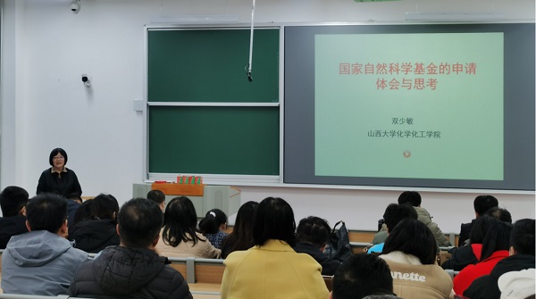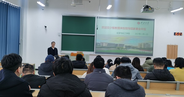 2025年11月12日,化学与化工学院召开2026年度国家自然科学基金申报培训会,特邀山西大学双少敏教授作了题为“国家自然科学基金的申请体会与思考”的专题报告。会议由院长焦纬洲教授主持,学院50余位青年教师参加了此次培训。