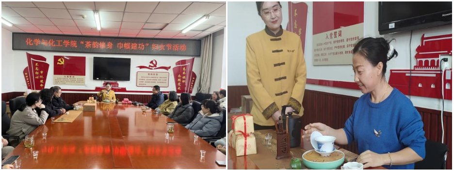 为庆祝第116个国际妇女节,丰富学院女教职工精神文化生活,传承中华优秀传统文化,3月6日,化学与化工学院工会精心策划了“茶韵修身 巾帼建功”茶文化主题活动。学院女教职工们齐聚一堂,在茶香氤氲中共度节日。