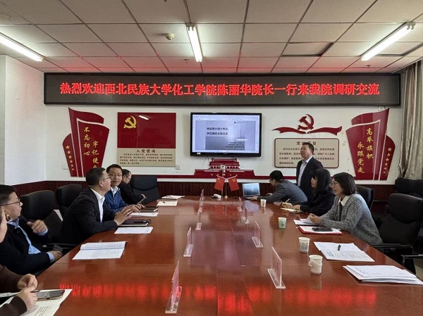 会议由焦纬洲院长主持。焦纬洲院长代表学院对陈丽华院长一行表示热烈欢迎,详细介绍了我院的基本概况、办学特色及发展成果,陈丽华院长介绍了西北民族大学化工学院教学、科研、学生培养、产学研合作等方面的相关情况。通过调研交流,不仅深化了两院之间的友谊与互信,更为双方后续开展常态化合作、实现协同发展搭建了坚实桥梁。