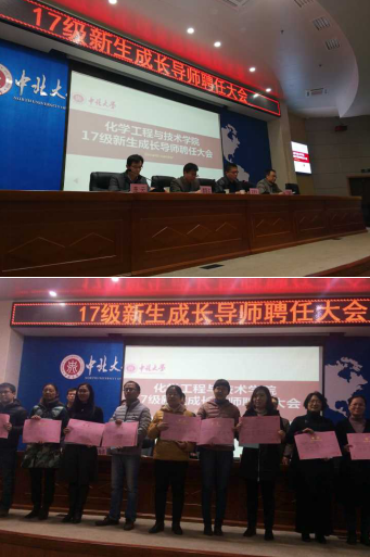 11月24日下午4时,化学工程与技术学院在瑾瑜国际会议中心举行“2017级新生成长导师聘任大会”,学院党委书记廖海洪、院长祁贵生、副院长王海宾、胡志勇以及学生成长导师和我院2017级全体学生参加此次会议,会议由学院党委副书记李云主持。