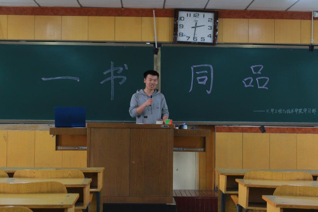 2018年4月15日下午2时30分,由化学工程与技术学院学习部承办的“一书同品”活动于教室06402H举行,主讲人为16级的张宇同学和17级的龚佳楠同学,邀请我院同学前来同品。