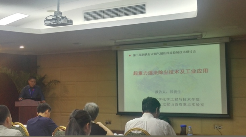 我院袁志国、祁贵生、罗莹、李伟伟等7位代表参加了此次会议。在烟气(煤气)除尘技术分会场,祁贵生教授的专题报告“超重力湿法除尘技术与工业应用”引起了钢铁行业科研院所和企业人士的广泛关注,报告介绍了超重力湿法除尘技术的机理和优势,并展示了中北大学工程化应用的成功案例。该技术可经济有效地实现中低气量含尘尾气的超低排放,具有良好的应用前景。