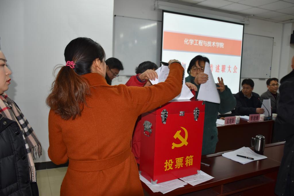 1月21日,化学工程与技术学院在科学楼206召开领导班子及领导干部个人述职述廉会议。由校党委组织部部长贾献忠、审计处处长孟建新、学生处处长尹建平、离退休人员管理处处长刘彬、纪委监察处副处长史育红等人组成的考核组参会,学院领导班子及全体教职工参加会议。会议由贾献忠部长主持。