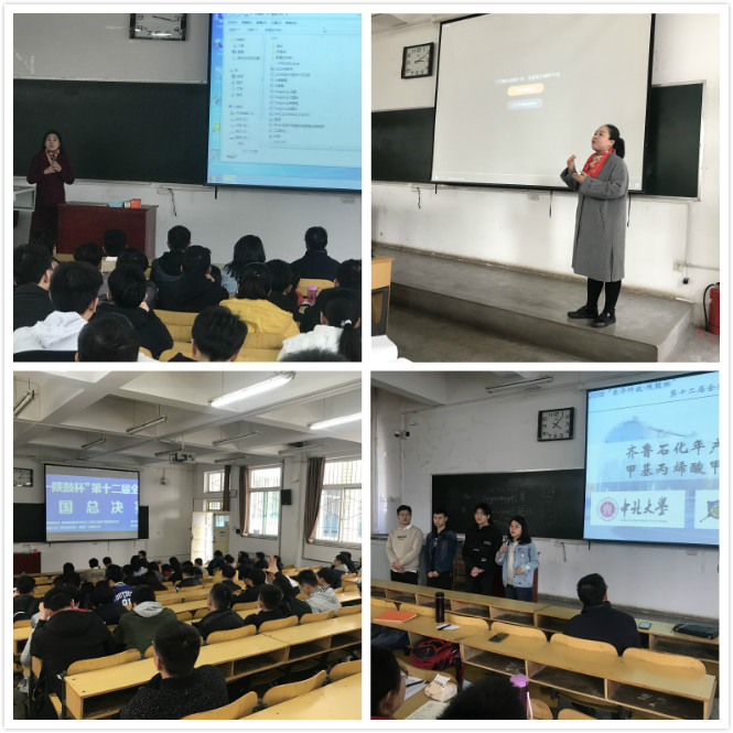大会由王艳红老师主持,会上给同学们播放了全国大学生化工设计竞赛组委会制作的大赛集锦短片,几分钟的短片让学生们感受到了全国大学生化工设计竞赛的赛事规格与参赛队伍的水平和风采,充分激发了学生的参赛热情。化学工程与技术学科部主任程原老师对大赛发展历程及中北大学历年的参赛情况进行了介绍,并对今年的竞赛任务书及参赛题目进行了细致的解读。王艳红老师介绍了全国大学生化工设计竞赛的基本情况,组队报名等相关事宜,以保证各位参赛同学能顺利报名,同时还介绍了今年省赛,西北赛区比赛及国赛的赛事安排,及学生报名成功后关于设计大赛指导的具体安排。会上还邀请到2018年代表中北大学参加全国大学生化工设计总决赛并获得全国一等奖的“且歌且行”团队,团队成员们向学弟学妹们传授了他们的参赛体会与经验,就他们各自负责部分的注意事项,分工特点及他们在参赛过程中收获的知识与友谊进行了分享,给学弟学妹们传递了正能量。最后,同学们与化工设计大赛指导团队的各位老师、“且歌且行”团队的各位同学进行了互动交流,通过交流也让指导老师们了解了学生们的各种情况与困惑,对下一步的指导工作也带来了新的启示,更提出了更高的要求。