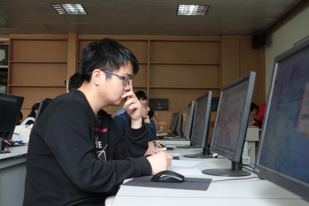 赛前,参赛者在工作人员的安排下有序入场。他们胸有成竹,对比赛充满信心。在了解了比赛方式和流程后,专业组的参赛者陆续开始答题。各组人员神情专注思考着眼前的问题,赛场之中只有鼠标敲击的声响,参赛者之间也只有头脑与知识的较量。