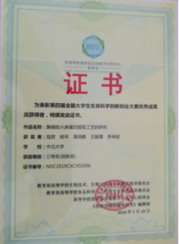 经过我院生物工程专业参赛人员及指导老师的不懈努力,在“第四届全国大学生生命科学创新创业大赛”中荣获佳绩,我校三个作品参赛,共荣获二等奖1项,三等奖2项。其中刘凯等六人凭作品“吸附树脂接枝刷对迷迭香酸的吸附性能研究”在比赛中荣获创新类二等奖(创新类),指导教师为史楠、郭建峰。李静等五人凭作品“一种用于沙棘黄酮检测的试剂盒及沙棘黄酮检测的方法”荣获创新类三等奖,指导教师为王海滨、王芳。寇君等五人凭作品“酶辅助火麻蛋白提取工艺的研究”荣获创新类三等奖,指导教师:李晓军。