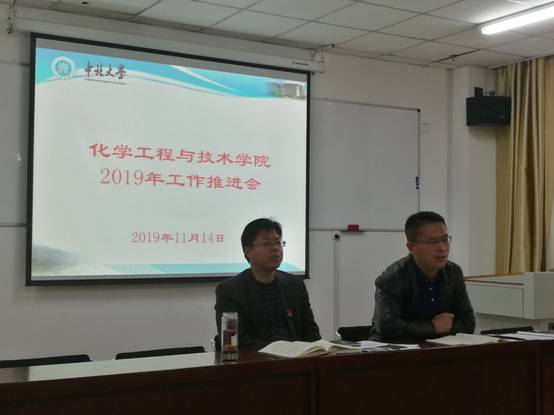 11月14日,化学工程与技术学院召开2019年工作推进会。学院全体院领导、学科部主任、副主任、科室负责人和党支部书记参加本次会议。