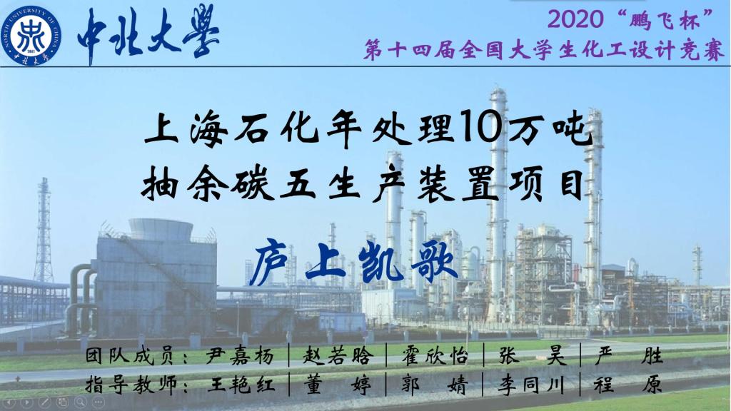 全国大学生化工设计竞赛是国内化工教育领域级别最高、参赛队伍最多、影响最大的比赛。此次决赛采用线上直播答辩的形式,包括小组赛和总决赛两个阶段,小组赛分6组进行,每个小组7支团队,小组前二名共12支团队进入总决赛。中北大学化学工程与技术学院“庐上凯歌”团队以小组赛第一名的成绩进入决赛,经过激烈的角逐,以优异成绩喜获西北赛区特等奖,成功晋级全国总决赛。这是中北大学连续七年获得此奖项。