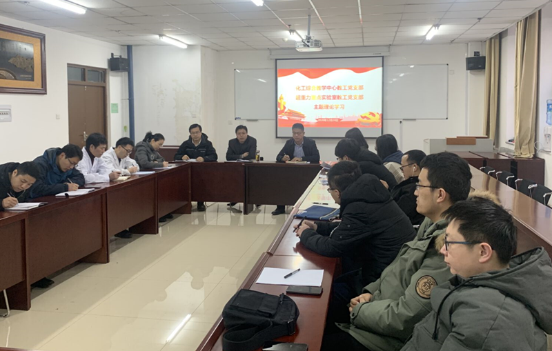 2020年12月24日上午9点,化学工程与技术学院化工综合教学中心教工党支部党支部和超重力重点实验室教工党支部在化学工程与技术学院科学楼206会议室,开展了深入学习贯彻党的十九届五中全会精神的主题理论学习活动,邀请学院党委委员、院长祁贵生给支部党员们上党课。党支部联系院领导、院党委书记廖海洪参加了本次会议。会议由化工综合教学中心教工党支部书记焦纬洲副院长主持。