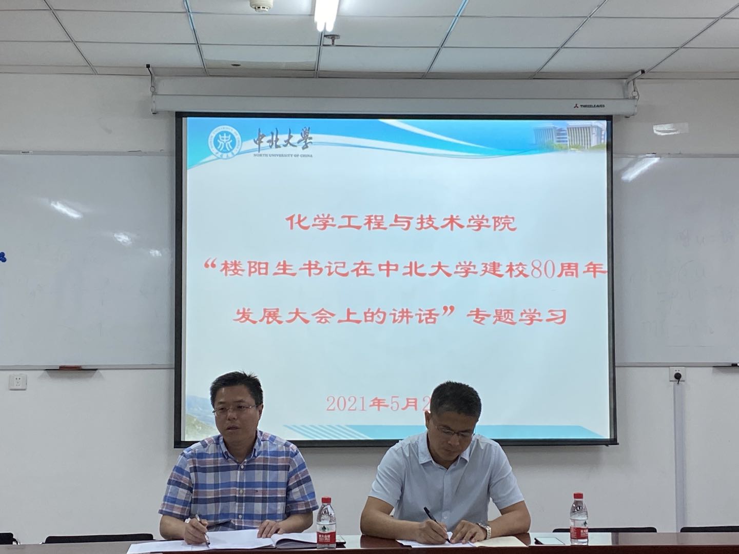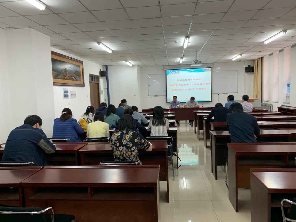 院党委书记廖海洪传达了省委书记楼阳生在中北大学建校80周年发展大会上的重要讲话精神,按照省委“四为四高两同步”总体思路和要求,学院上下要脚踏实地,只争朝夕,培养高质量化工人才,为我省转型发展提供有力人才和智力支撑。学院全体党员要以崇高的政治觉悟、昂扬的精神状态、务实的工作作风持续开展好党史学习教育,以饱满热情迎接中国共产党建党100周年。廖书记对近期学院安全稳定工作进行了安排部署。