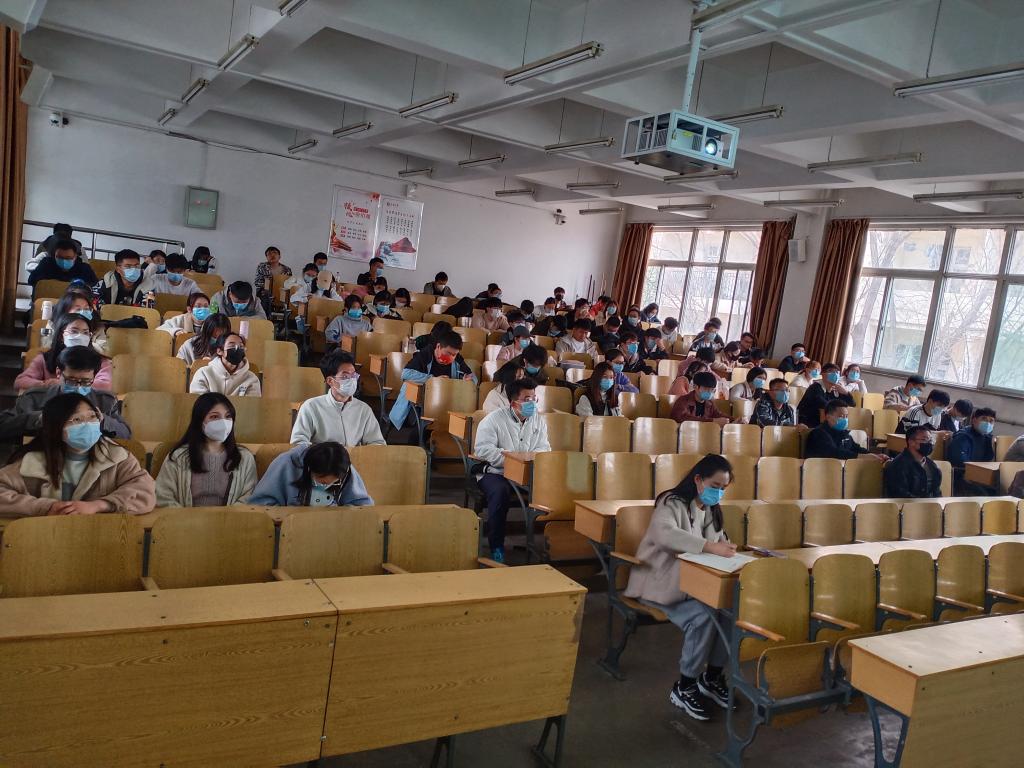 为深入贯彻落实习近平总书记考察山西重要指示精神,加强校园疫情防控,化学工程与技术学院于2022年3月11日下午,采用线上(腾讯会议)与线下(10203H)相结合的形式,开展了以 “牢记领袖嘱托,争做新时代社会主义接班人”为主题的“开学第一课”。本活动邀请学院党委书记廖海洪主讲,硕士研究生党支部书记贾苗苗主持,学院全体学生参会。