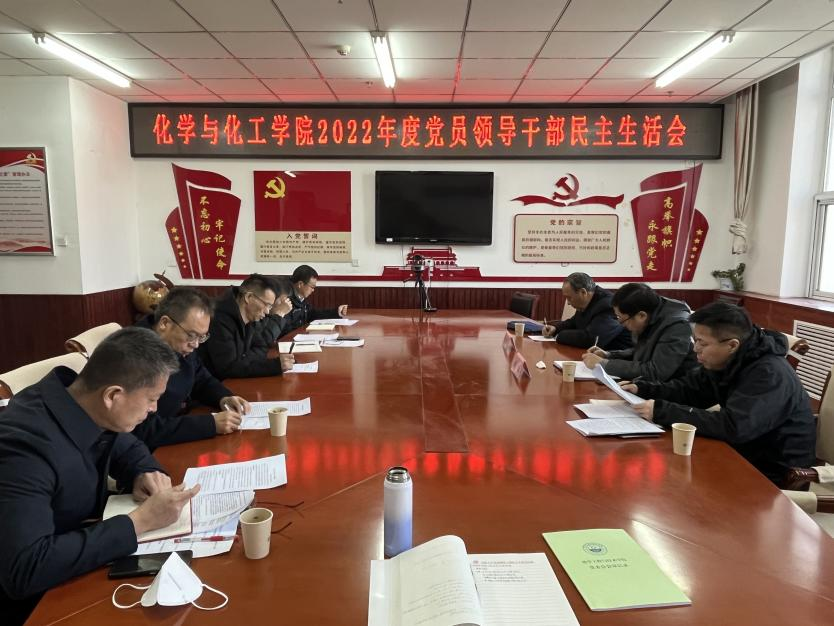 根据中北大学《关于召开2022年度党员领导干部民主生活会的通知》,2023年2月7日上午10时,化学与化工学院党委在科学楼C座705室组织召开了2022年度党员领导干部民主生活会,会议由院党委书记廖海洪主持,副校长刘俊莅临指导、校纪委委员李仰军进行督导。