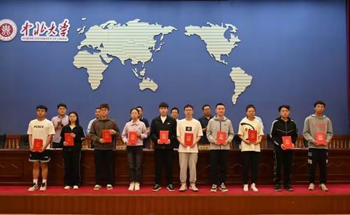 雷锋斌代表学校对海南维新国际供应链管理有限责任公司给予我校学生教育管理工作的关注关心表示感谢,向公司和郑洪波、孙召通两位先生支持和激励中北学子奋发进取的善举致以崇高敬意,也向所有获奖同学表示热烈祝贺。他表示,两位先生的义举,彰显了企业家的社会担当,是广大青年学子成长路上学习的典范。他向同学们提出三点要求:一要胸怀理想、追求进步;二要勤于学习、踔厉奋斗;三要锤炼品格、自觉担当。他希望广大学子能珍惜青春最美的时光以实际行动去实现自己的理想,创造明天的辉煌;希望更多的中北学子能够走进维新,走入企业、学习企业艰苦创业的精神、学习两位企业家勇担责任的情怀;希望维新公司和两位先生能够常来中北,现身说法、言传身教,引领广大中北学子向上向前向优奋进。