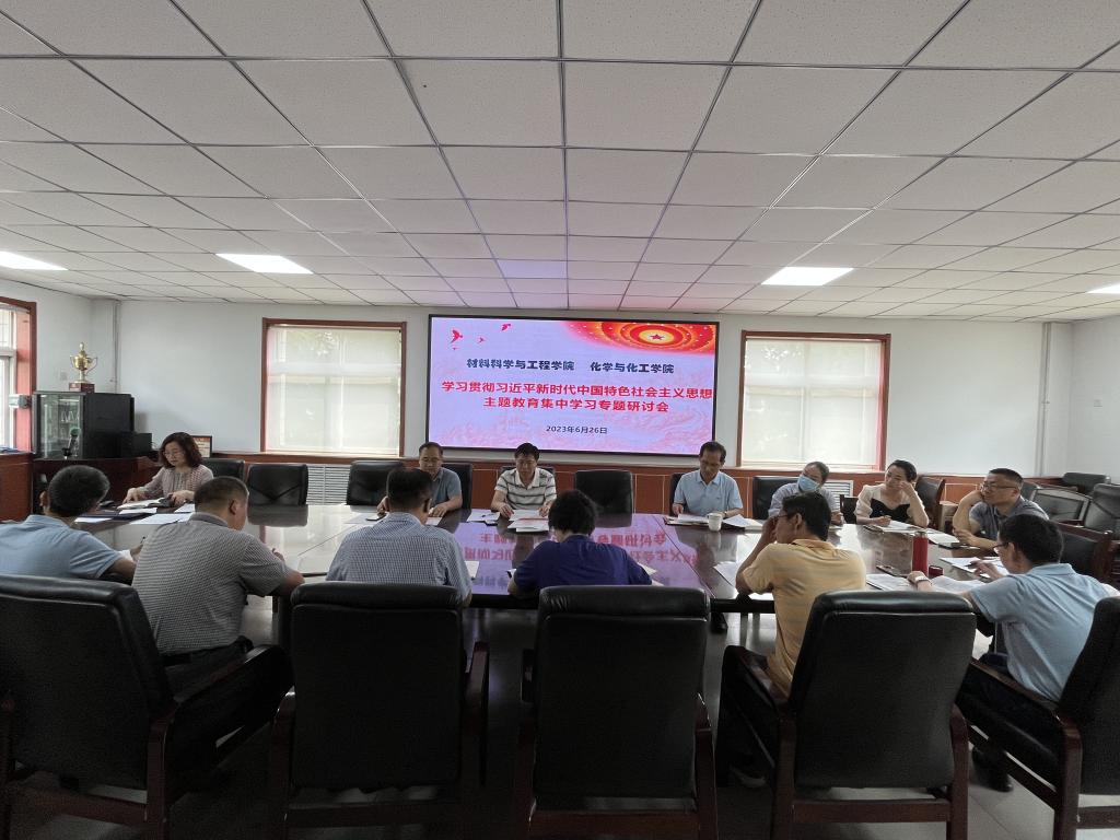 2023年6月26日,化学与化工学院联合材料科学与工程学院以“联组共学”方式开展学习贯彻习近平新时代中国特色社会主义思想主题教育第三次集中学习。会议由院党委书记廖海洪主持,党委理论学习中心组全体成员、科级干部和全体支部书记参加学习并作交流发言。