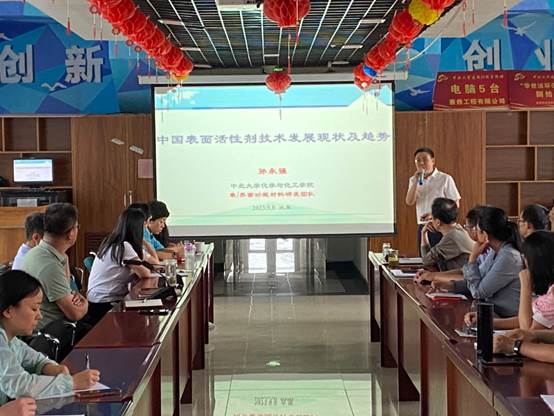 本次座谈邀请了学院新引进的国家级人才孙永强教授级高工为青年教师做了题为《中国表面活性剂的发展现状及趋势》的报告,对我国目前表面活性剂及相关领域的科研进展、产业化问题、市场前景及趋势等进行了细致的讲解。与会教师就相关科研话题进行了热烈讨论。