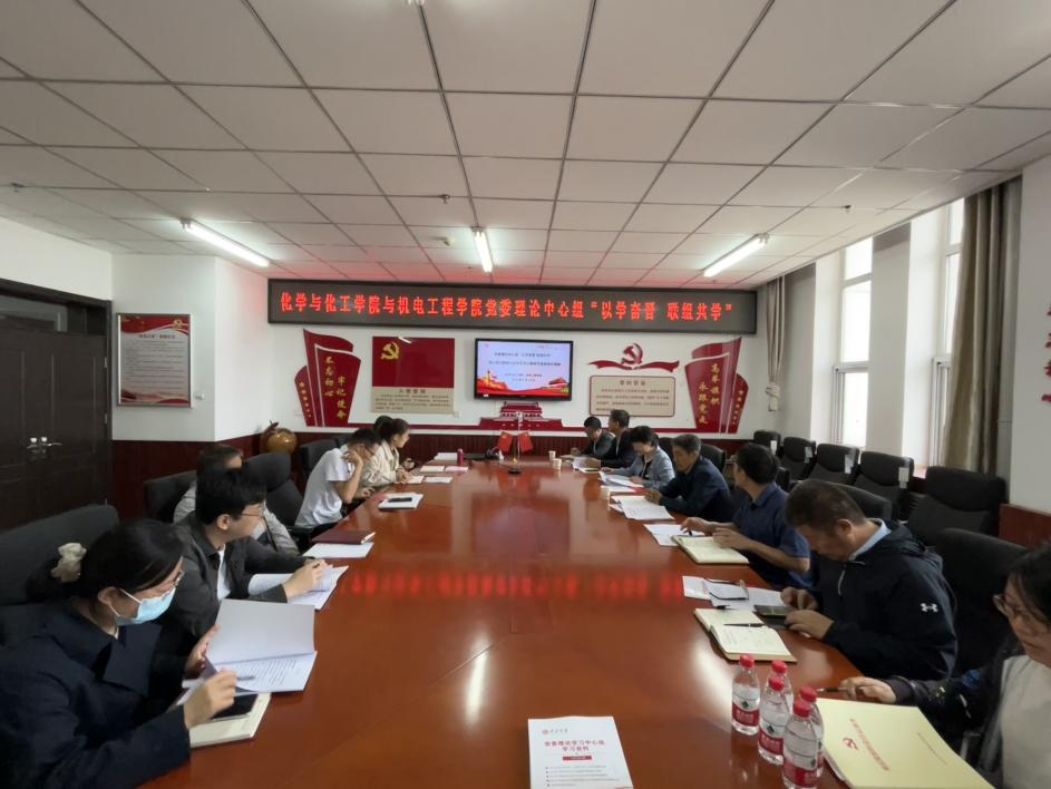 2023年9月28日,化学与化工学院联合机电工程学院以“以学奋晋 联组共学”方式开展党委理论学习中心组集中学习。院党委书记吴志远主持会议,重点学习习近平总书记教师节重要指示精神及习近平总书记关于网络强国的重要思想。学院党委理论学习中心组成员和化学与化工学院各党支部书记参加学习并作交流发言。