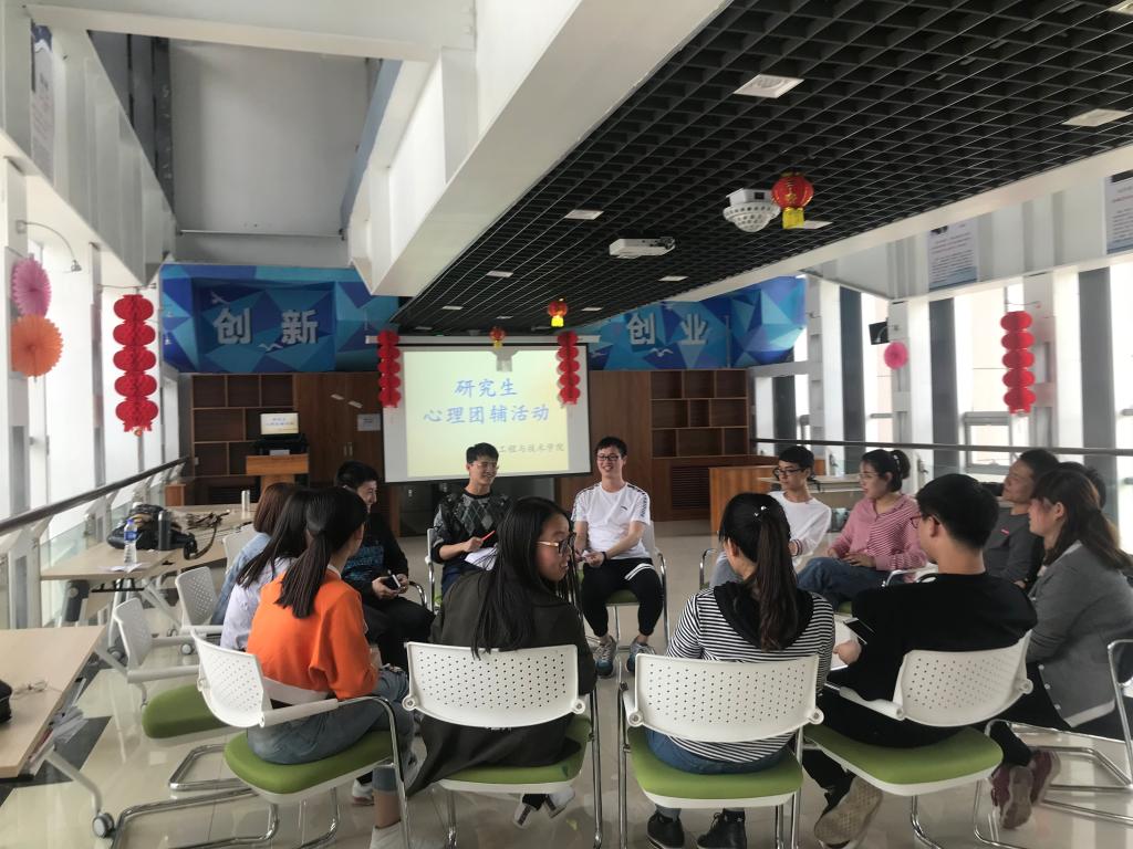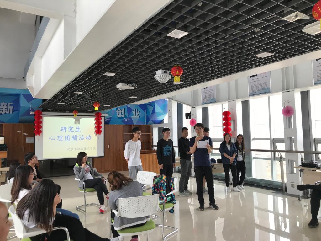 为增进研究生之间的交流与沟通,对学院研究生心理状况有明确的认知,并能发现与解决研究生心理问题。化学工程与技术学院于4月19日下午在科学楼七层连廊组织开展研究生心理团辅活动。邀请学院心理辅导老师郭禹老师主持,研究生辅导员贾苗苗老师及全体研一学生参加此次活动。